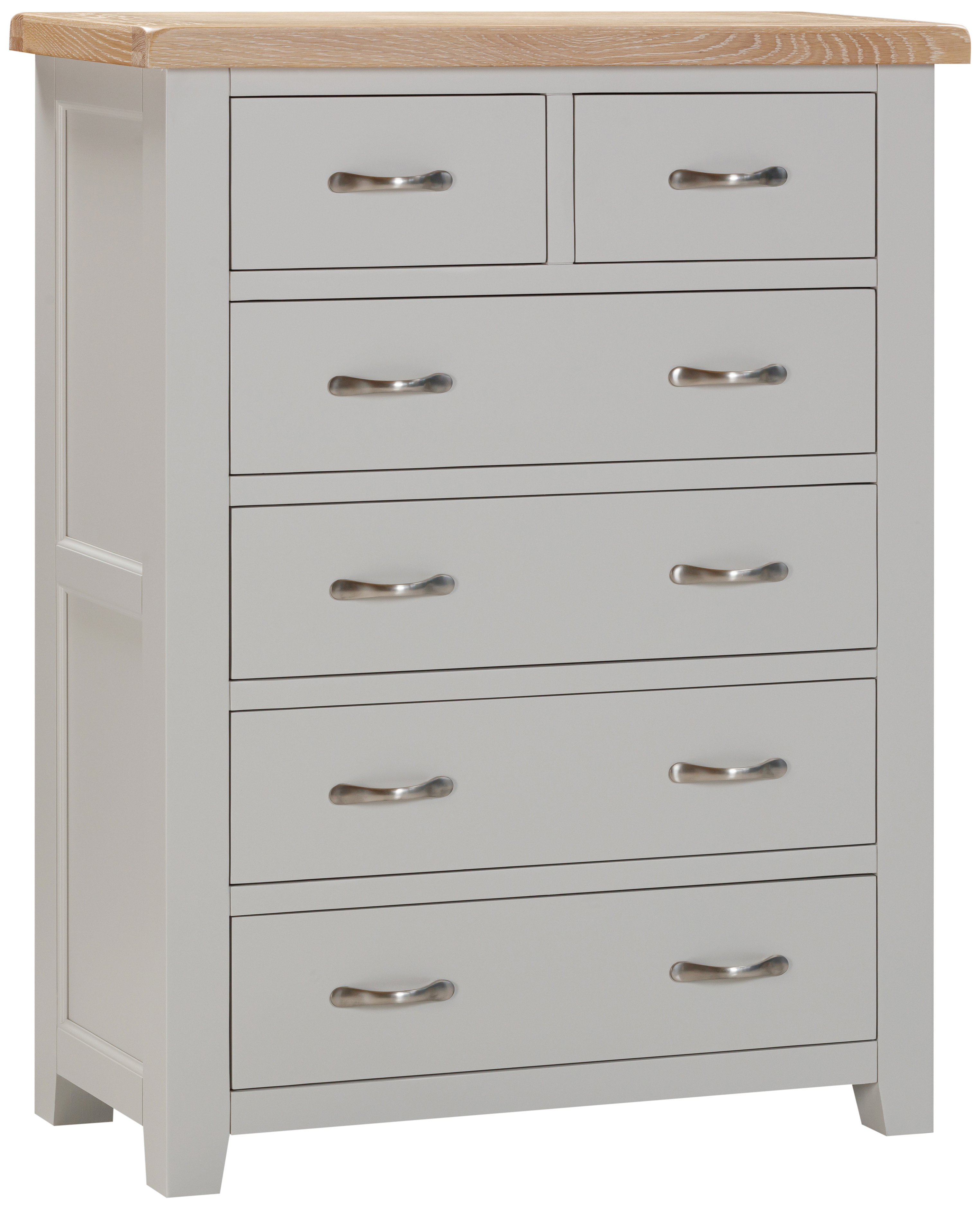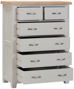 When ample storage is needed, our 2 over 4 chest is the ideal piece. With its two small drawers positioned above four large drawers, and taking advantage of height rather than floor space, this chest provides the most versatile and generous storage required in any home. With a chunky, round-edged top in a beautiful pale white-washed oak, and a choice of nine stunning paint colours, this chest can be altered to fit a range of interior design aesthetics.