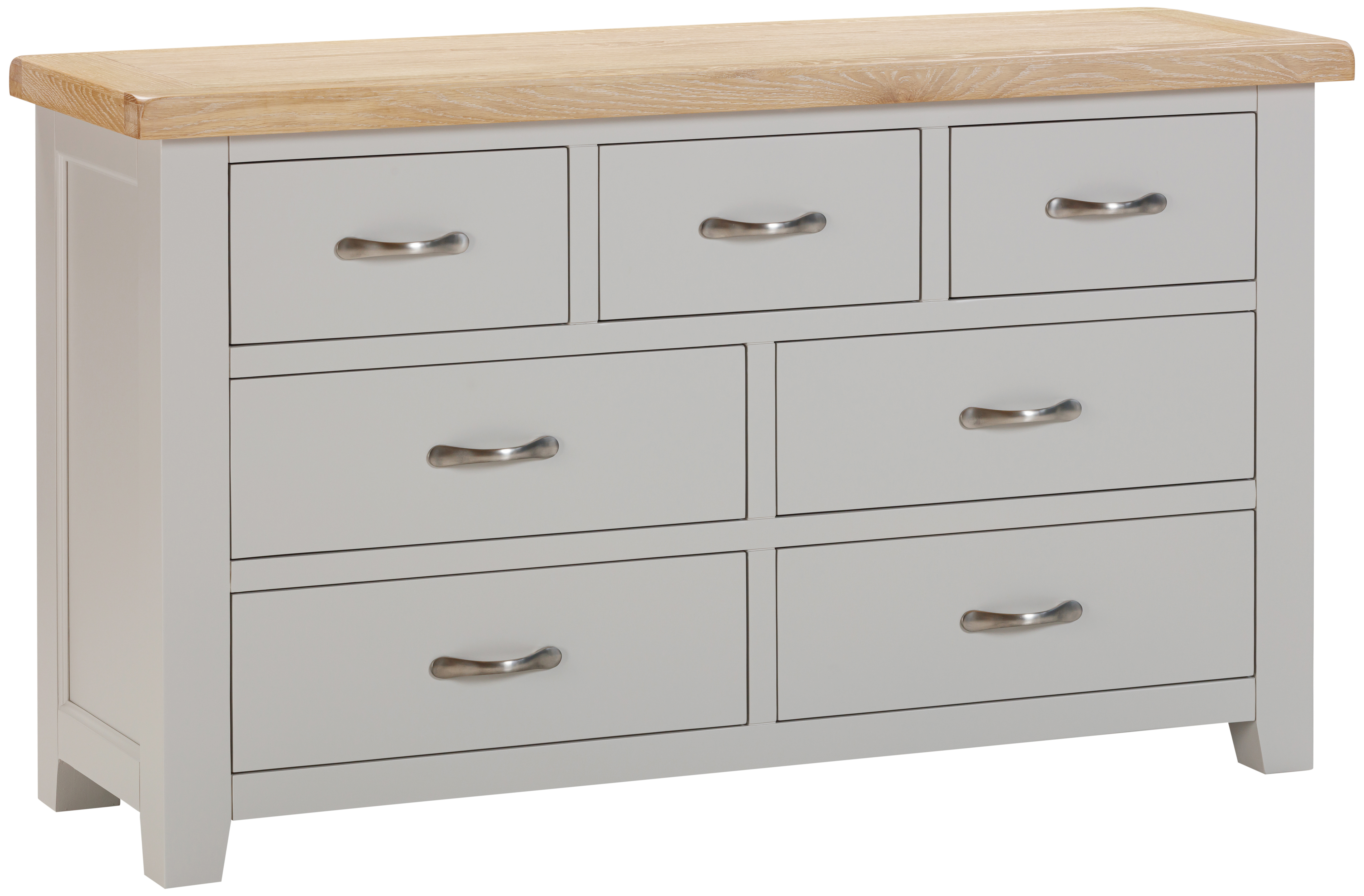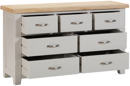 This 3 over 4 drawer chest is perfect for wider spaces, and where a lower height is required. Offering ample storage over 7 perfectly proportioned drawers, and a well as a sizable surface area suitable for a TV, lamp, plants, or a mirror. This chest provides the ultimate in storage solution for your home. Nine different paint colour options are available for this chest to match a variety of interior design styles.