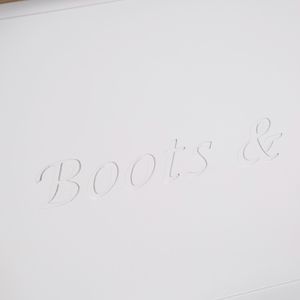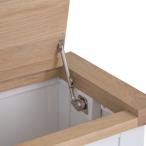 Features• Flip lid opening • Carved ''Boots & Wellies'' detail on front panel • Chunky Oak Top with Rounded Corners• Storage Trunk • Soft Close Doors & Drawers