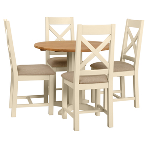 This classy and functional drop-leaf table is perfectly suited for smaller rooms or kitchen-diners, designed to fit 4 comfortably when both leaves are raised. This table has been made to fit in with any of our light oak and fabric dining chairs. Supplied as standard in Ivory but also available in an additional 8 colours so there''s sure to be a colour to suit your home decor.